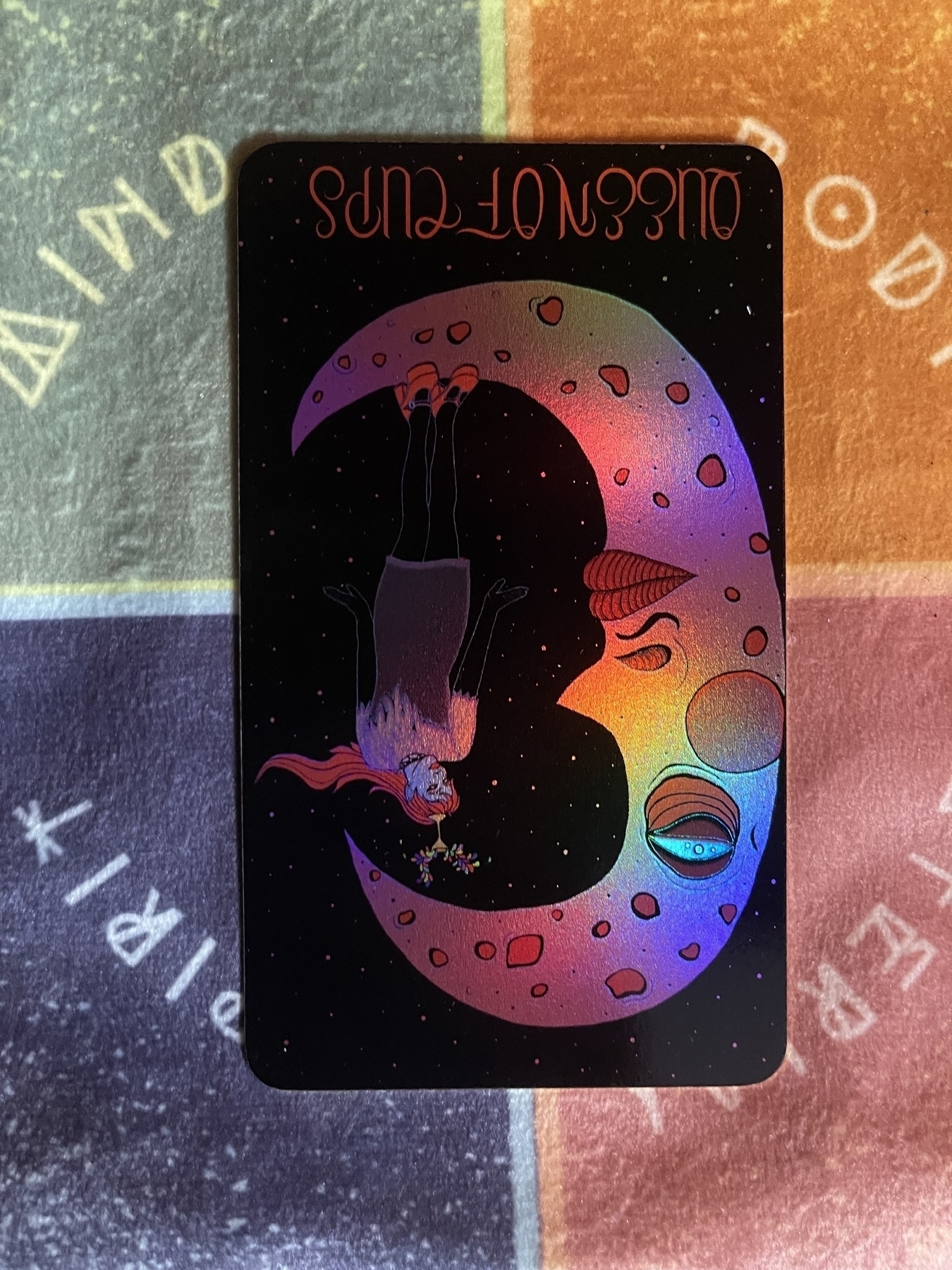 #Core-Reverse-Queen-of-Cups: The voice of self doubt and fear of failure. Of conservatism and fear of change. It might be a person, or merely the memory, a ghost of someone’s of something’s voice the lingers in your head, nagging you for all the perceived fears and failures the can come from your actions. You must learn to ignore this inner voice, leave the individual whom it belongs to progress forward, perhaps they will follow, or perhaps they will stay as they are, stewing in their fear and bile, but you can’t make decisions for others, only yourself.