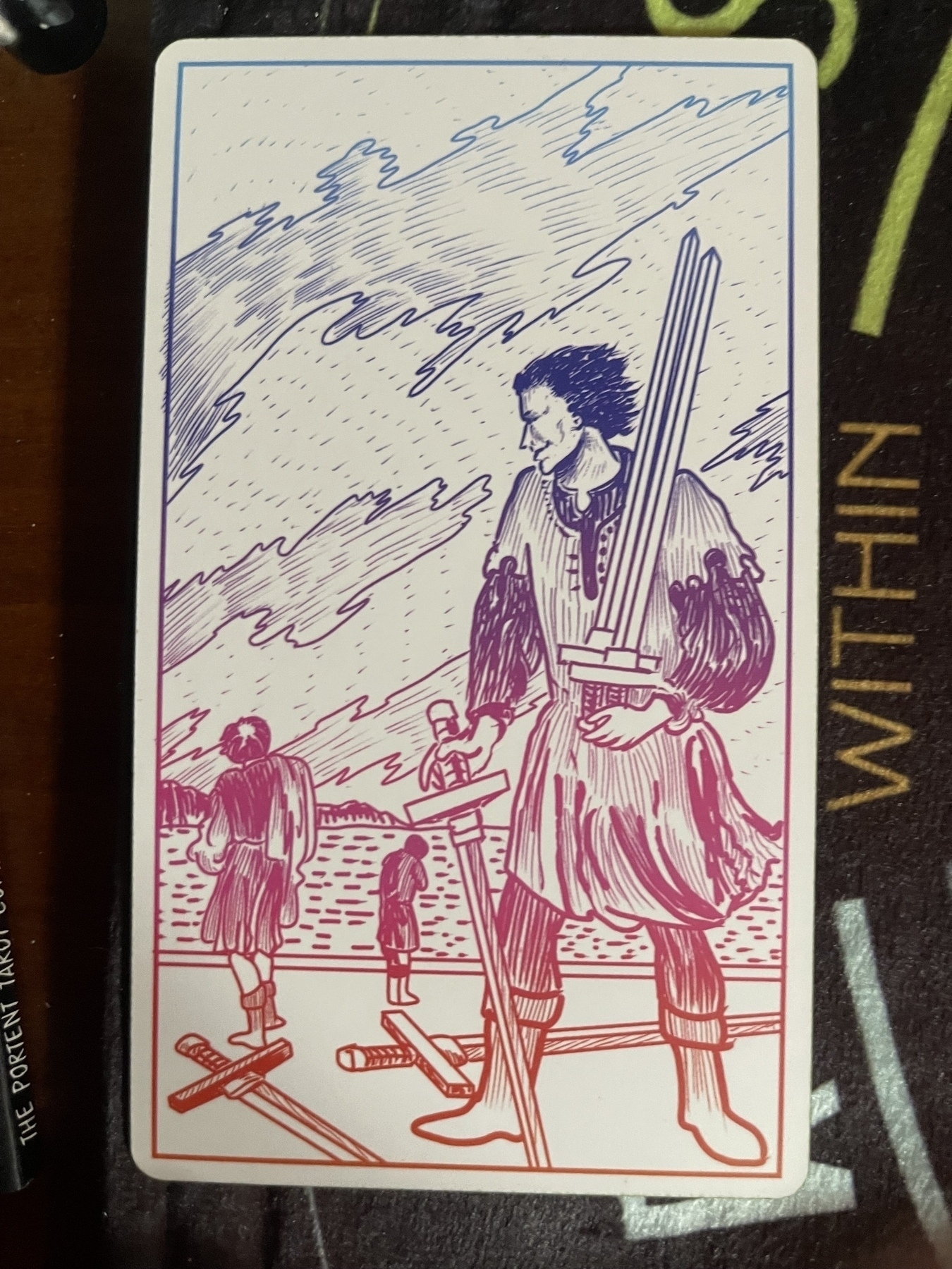 #Within-V-of-Swords: You have been brought to violence, you carry a weapon with you and ensure others can see it as a warning that you will fight back if threatened. Now ask yourself why? For what reason has it come to this, and most importantly is it still necessary? Is there still a threat to fight, to dual to the death? Or are all you left with is scars and phantoms, making others feel as threatened by you as you were once threatened, inspiring them to pick up the sword for their own “safety”.