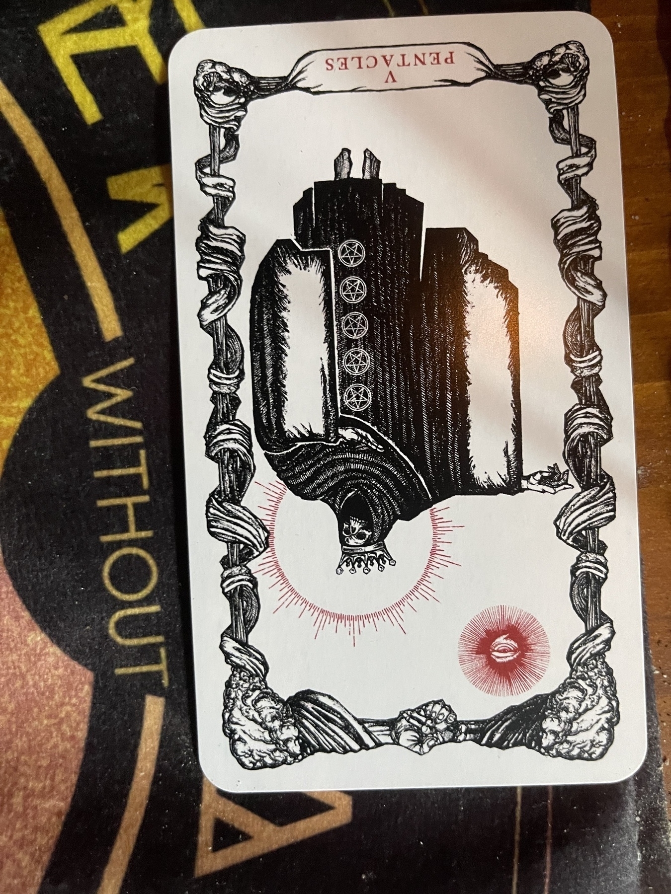 #Without-Reversed-V-of-Pentacles: The comparison of what we have and those who have less do. The thought process behind “you should be ashamed of complaining because there are starving kids in Africa” There will always be those who in some aspect have it worse of the us, to constantly compare and sacrifice every joy considered this is nothing but maddening. Do not disregard and ignore the suffering of others, but do not martyr yourself at the first opportunity. You to have value and a right to happiness. Help with what you can, but don’t be afraid to stop and take care of yourself.